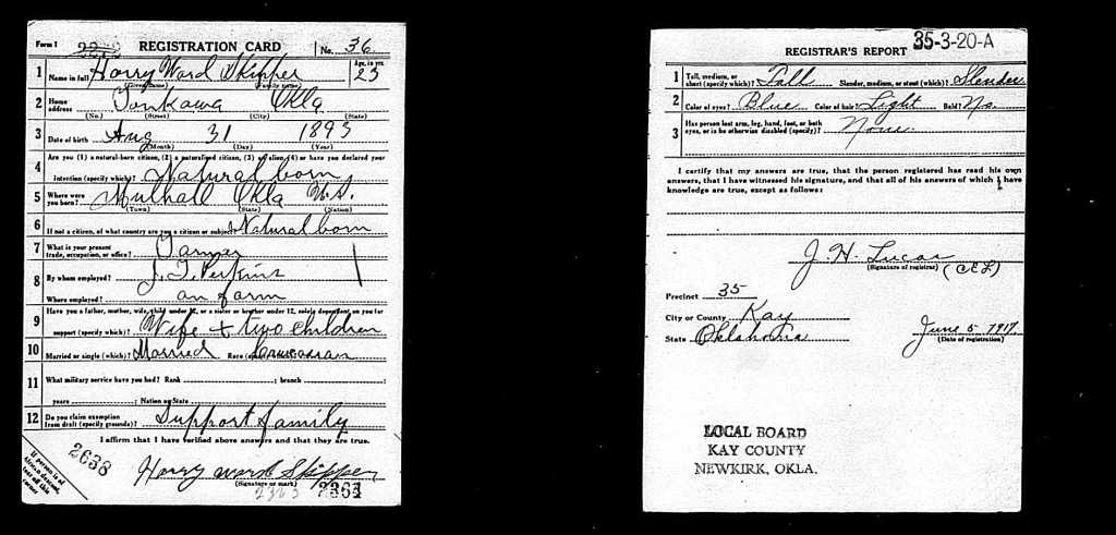 WWI draft card for Harry Ward Skipper. Image from ancestry.