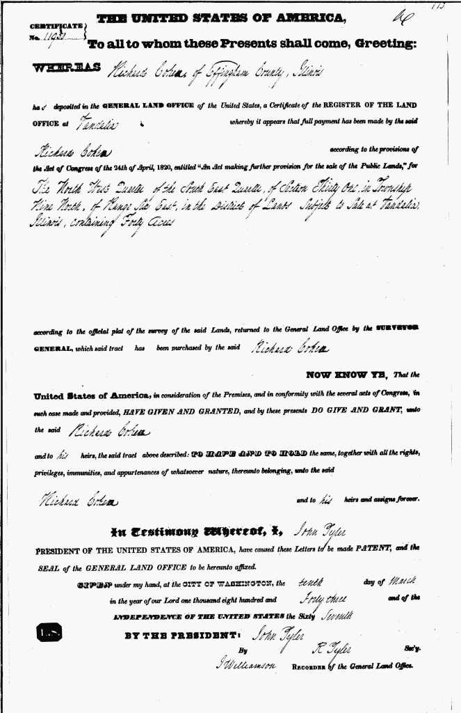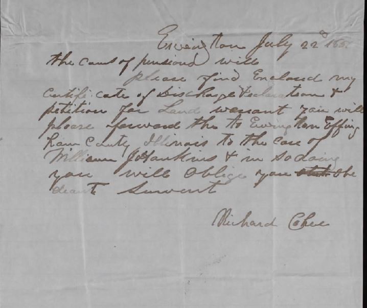 Richard Cohea was granted 40 acres of land in Effingham, Illinois. I have visited Effingham several times and learned so much about all my family that lived there. I think Rodicia did receive her pension but I could not confirm that. In one of the documents filed Rodicia’s daughter was, looking for some additional funds that were not paid the last couple of months before Rodicia died.