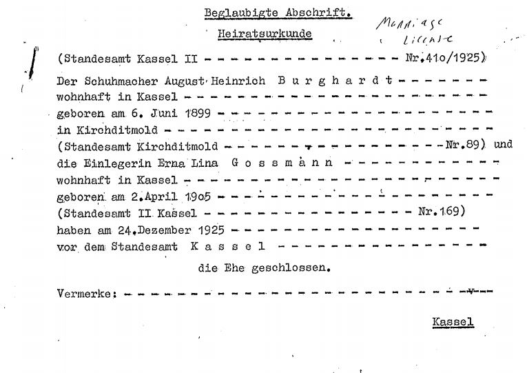 My great-grandfather worked for Henschel and Sohns, a mechanical and automotive engineering company, during WWII in Kassel Germany. August Heinrich Burghardt was born on 6 June 1899 in Kirchditmold, Hesse, Germany to Heinrich Jakob Burghardt and Maria Klapp.