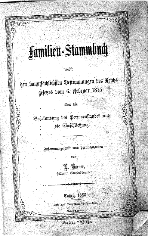 Familien-Stammbud, Cassel, 1883, Privately help by Jennifer Bigham [Address for Private Use] Thornton, Adams County,