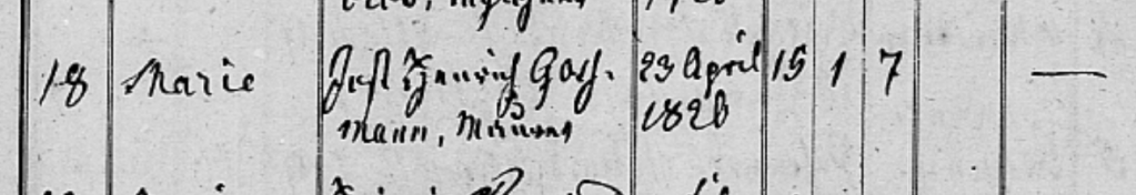 Aside from the confirmation record, I don’t have any other documentation that specifically names Maria. However, I do have a couple of census records in which I believe Maria is included. In the 1834 Wehlheiden Census, Jost Heinrich Gossmann is the only person named, but he is listed as living with 2 males under 14, 2 females under 14, 1 male aged 15-60, and 1 female aged 15-60.